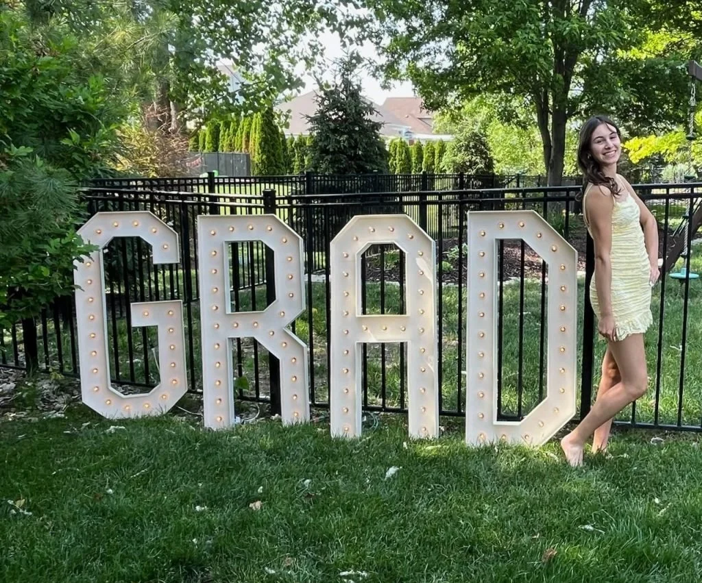 4ft Lighted “G.R.A.D.” Sign Letters (White – Graduation parties, Etc.) $100.00